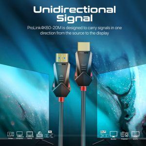 إشارة أحادية الاتجاه: تم تصميم ProLink4K60-20M لحمل الإشارات في اتجاه واحد من المصدر إلى الشاشة.